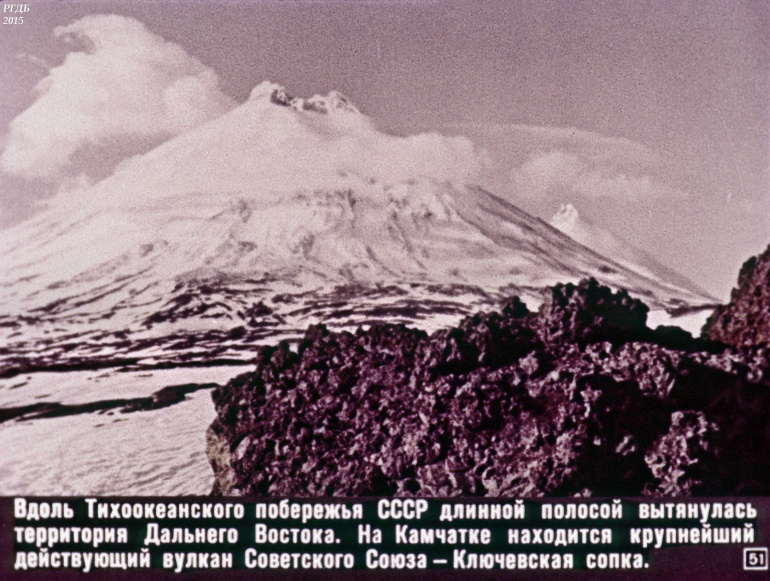 Вдоль Тихоокеанского побережья СССР длинной полосой вытянулась территория Дальнего Востока. На Камчатке находится крупнейший действующий вулкан Советского Союза - Ключевская сопка.![]()