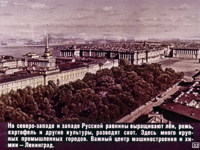 На северо-западе и западе Русской равнины выращивают лён, рожь, картофель и другие культуры, разводят скот. Здесь много крупных промышленных городов. Важный центр машиностроения и химии - Ленинград.![]()