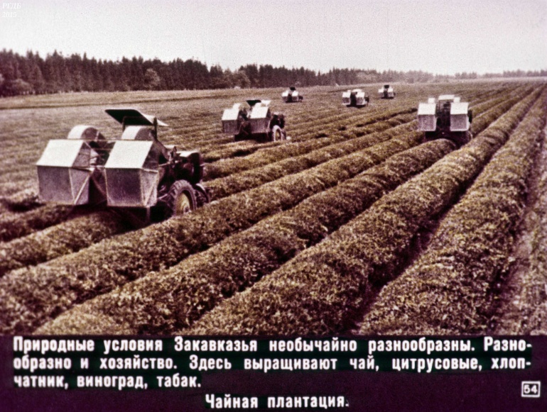 Природные условия Закавказья необычайно разнообразны. Разнообразно и хозяйство. Здесь выращивают чай, цитрусовые, хлопчатник, виноград, табак.