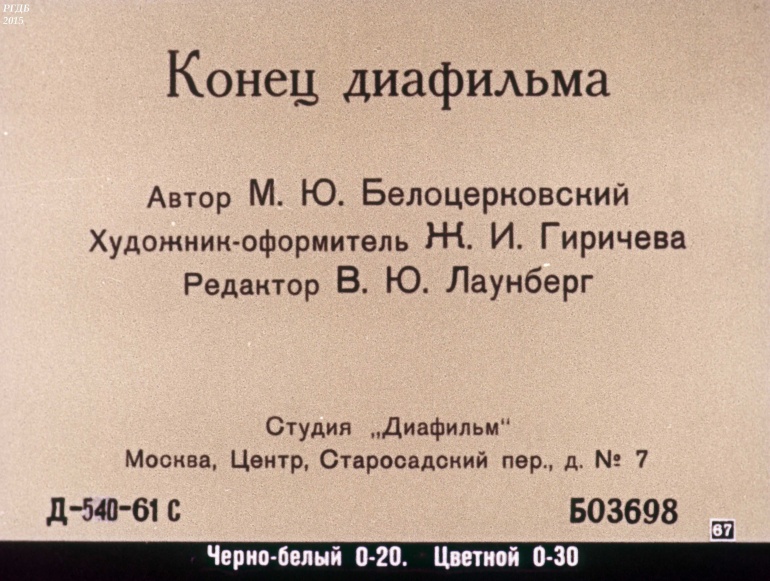 Студия "Диафильм" Госкино СССР, 1961 год.