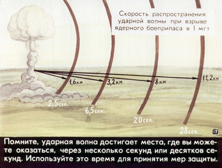 Помните, ударная волна достигает места, где вы можете оказаться, через несколько секунд или десятков секунд. Используйте это время для принятия мер защиты.![]()