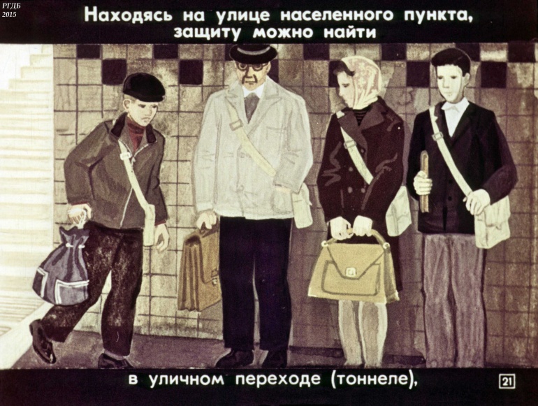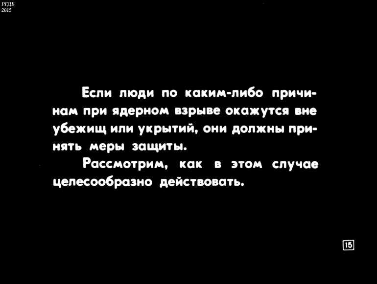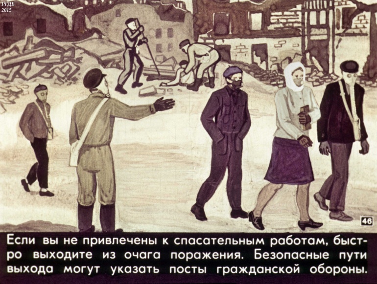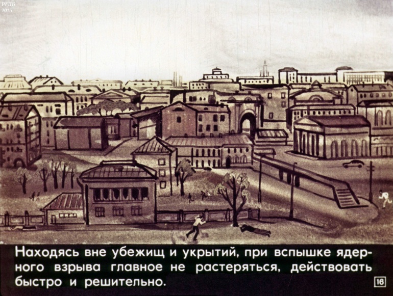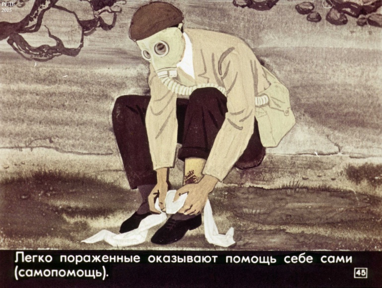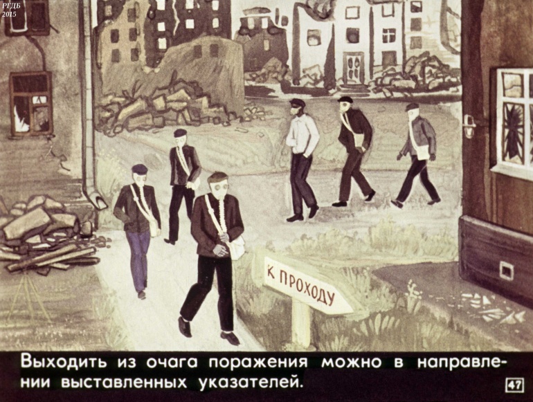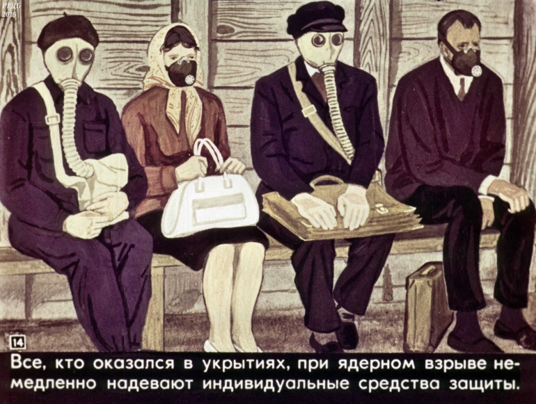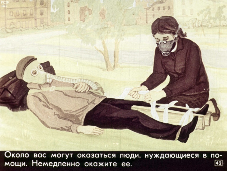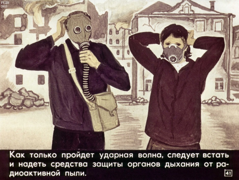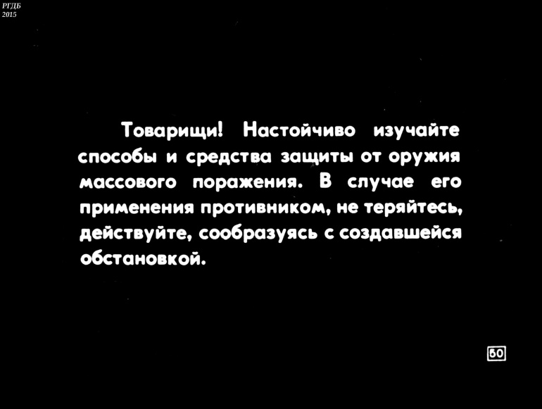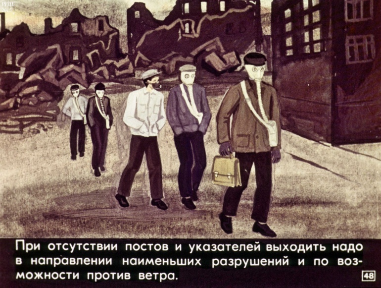 Товарищи! Настойчиво изучайте способы и средства защиты от оружия массового поражения. В случае его применения противником, не теряйтесь, действуйте, сообразуясь с создавшейся обстановкой.