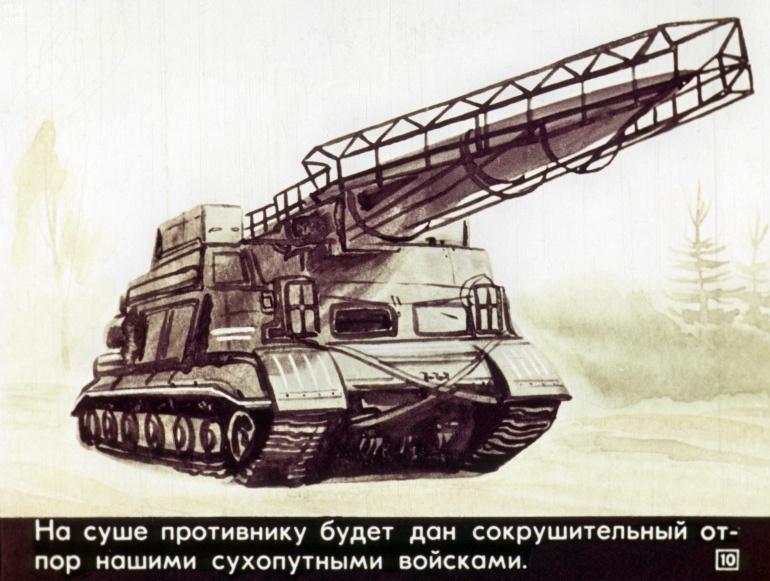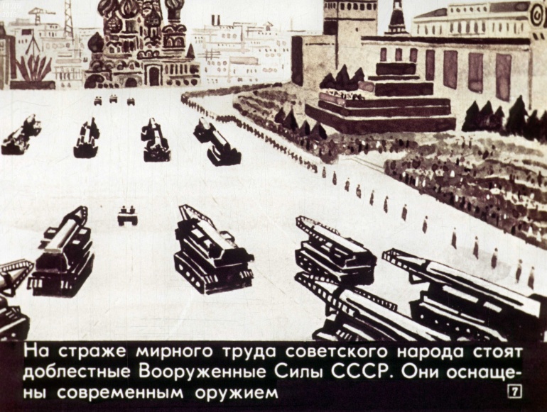 На страже мирного труда советского народа стоят доблестные Вооруженные Силы СССР. Они оснащены современным оружием.![]()