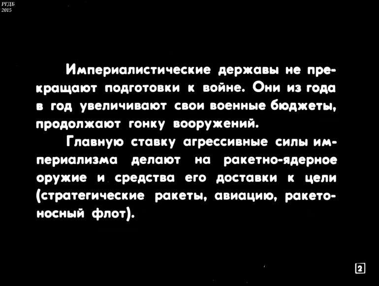 Империалистические державы не прекращают подготовки к войне. Они из года в год увеличивают свои военные бюджеты, продолжают гонку вооружений. Главную ставку агрессивные силы империализма делают на ракетно-ядерное оружие и средства его доставки к цели (стратегические ракеты, авиацию, ракетоносный флот).![]()
