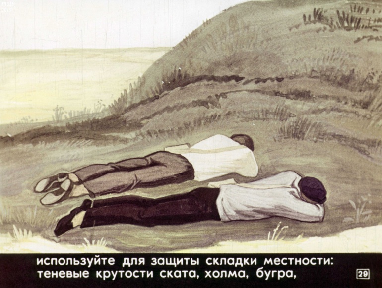 используйте для защиты складки местности: теневые крутости ската, холма, бугра,![]()