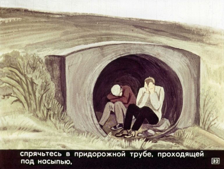спрячьтесь в придорожной трубе, проходящей под насыпью,![]()