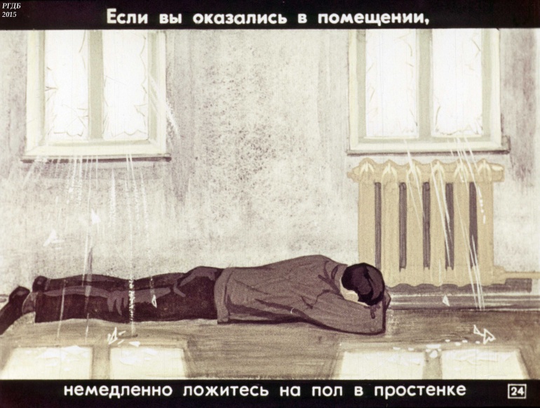 Если вы оказались в помещении, немедленно ложитесь на пол в простенке![]()
