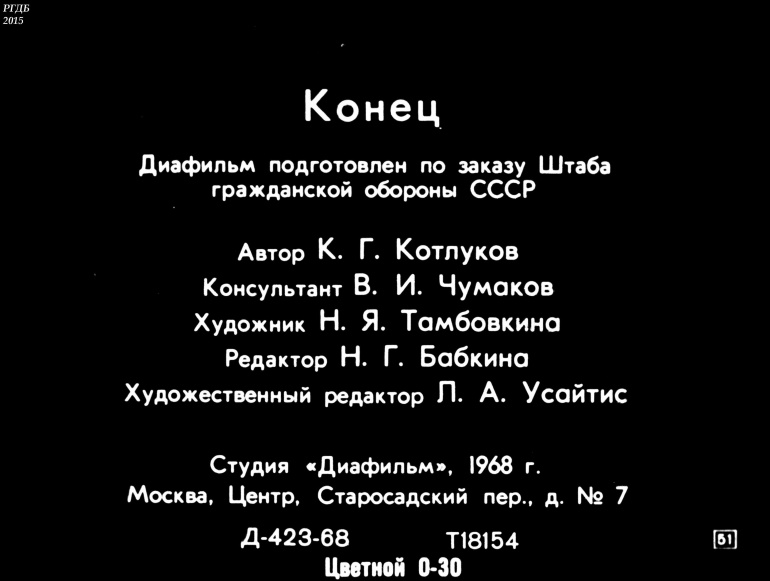 Диафильм подготовлен по заказу Штаба гражданской обороны СССР![]()