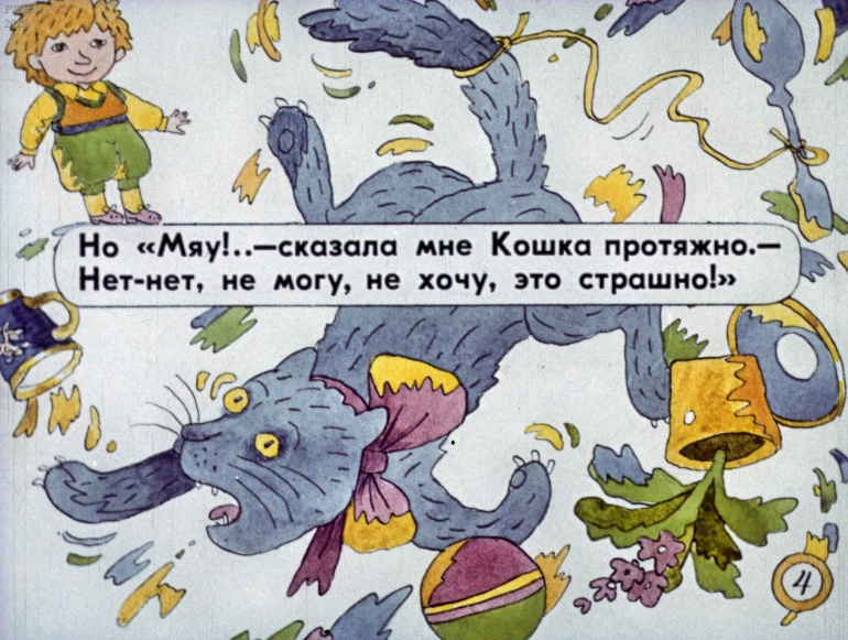Говорящая кошка 1 Категория: ДиафильмыПросмотры: 1 403 Диафильм "Говорящая кошка". Эмма МошковскаяСтудия "Диафильм" Госкино СССР, 1987 год. Д-003-87, цветной 0-30 копеек
