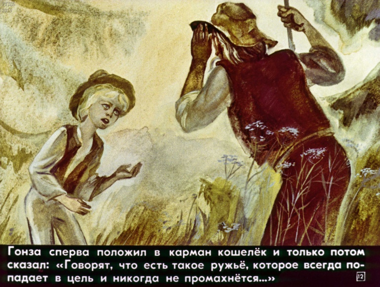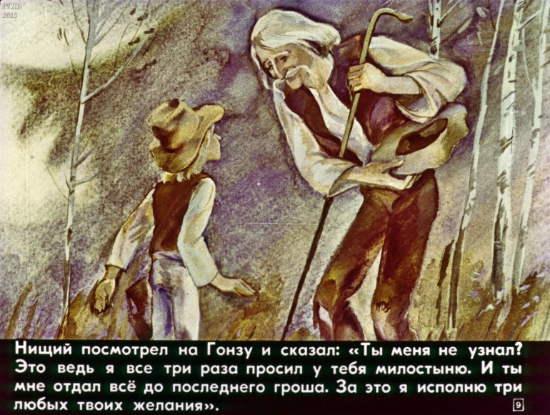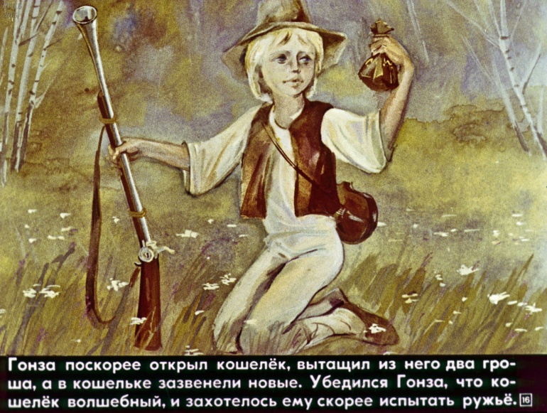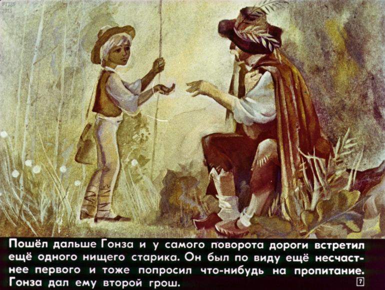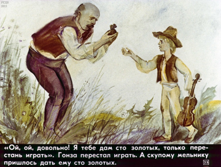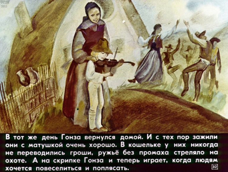 Гонза и скрипка 0 Категория: ДиафильмыПросмотры: 1 328 Диафильм "Гонза и скрипка". Чешская сказкаСтудия "Диафильм" Госкино СССР, 1981 год. Д-122-81, цветной 0-30 копеек