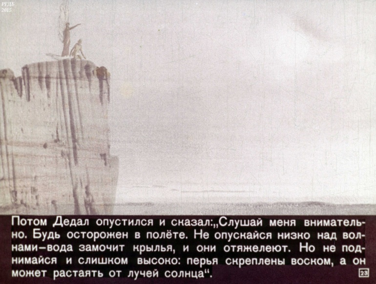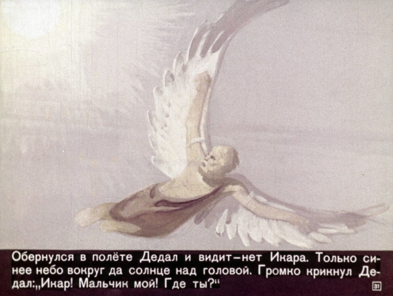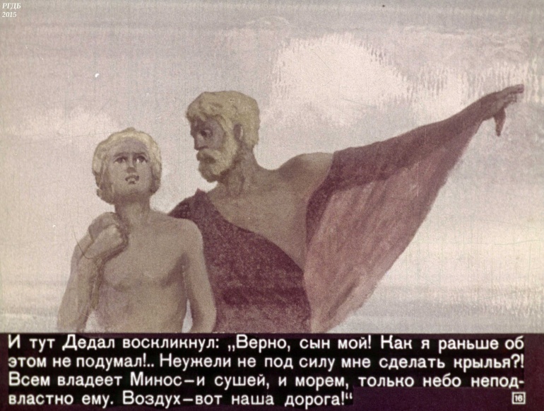 Дедал и Икар 1 Категория: ДиафильмыПросмотры: 1 577 Диафильм "Дедал и Икар".Студия "Диафильм" Госкино СССР, 1971 год. Д-011-72, цветной 0-30 копеек