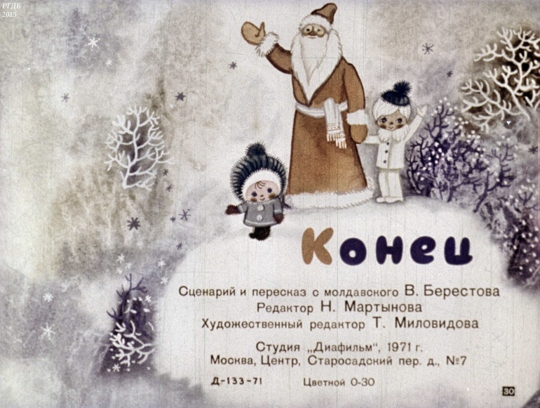 Деды Морозы 2 Категория: ДиафильмыПросмотры: 1 674 Диафильм "Деды Морозы". Спиридон Вангели.Студия "Диафильм" Госкино СССР, 1971 год. Д-133-71, цветной 0-30 копеек