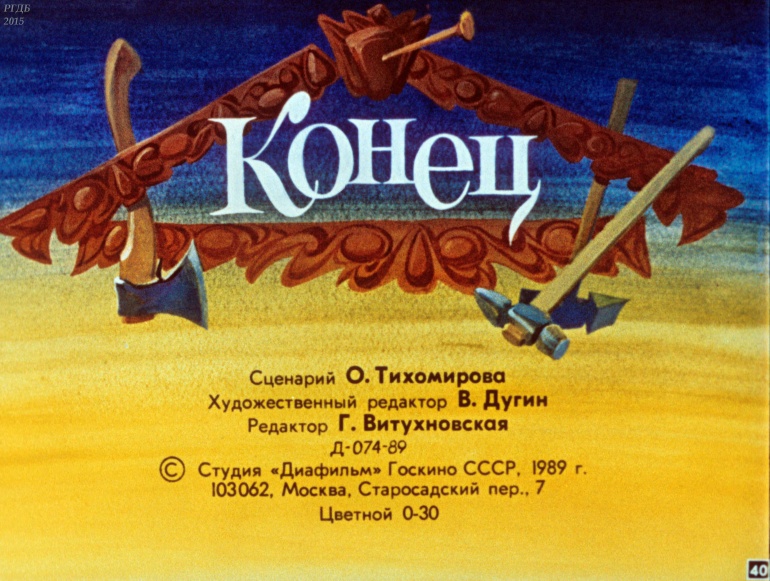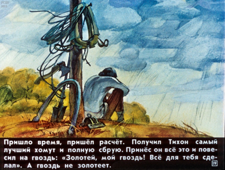 Золотой гвоздь 6 Категория: ДиафильмыПросмотры: 1 378 Евгений Пермяк. Диафильм "Золотой гвоздь"Студия "Диафильм" Госкино СССР, 1989 год. Д-074-89, цветной 0-30 копеек