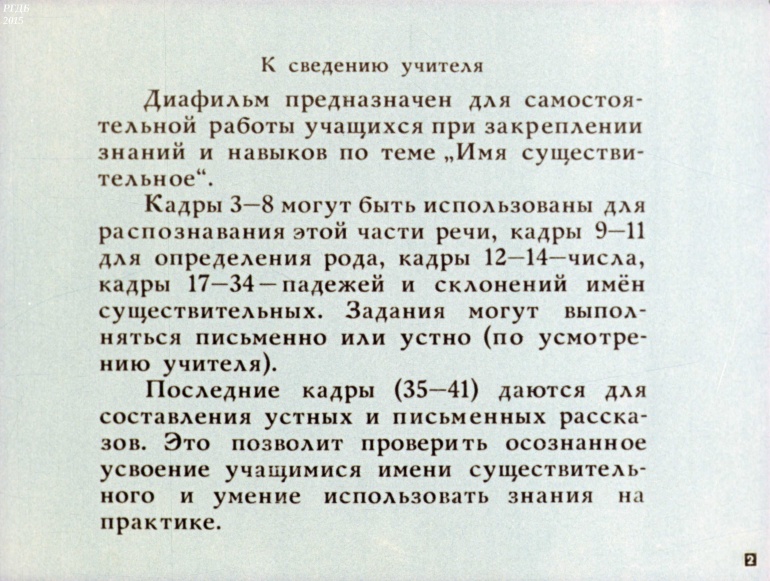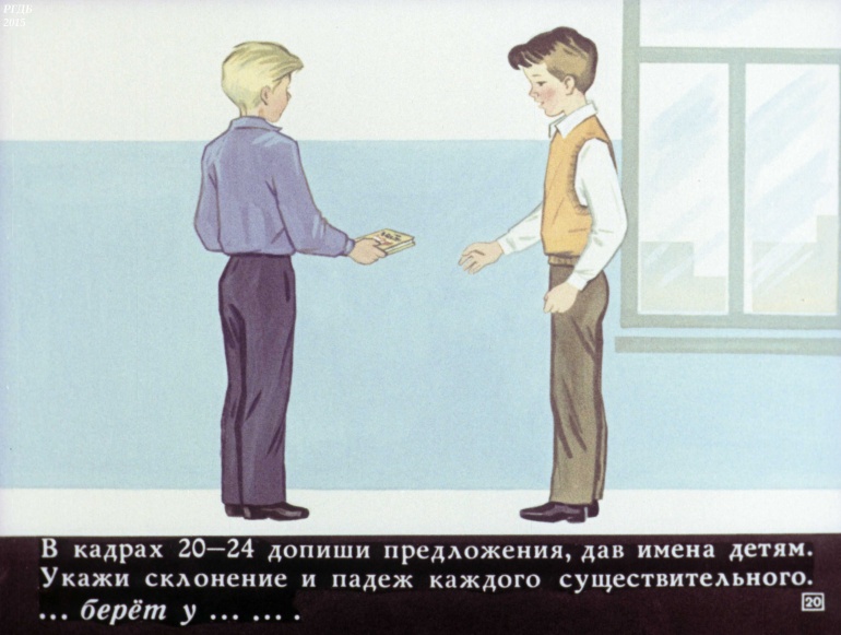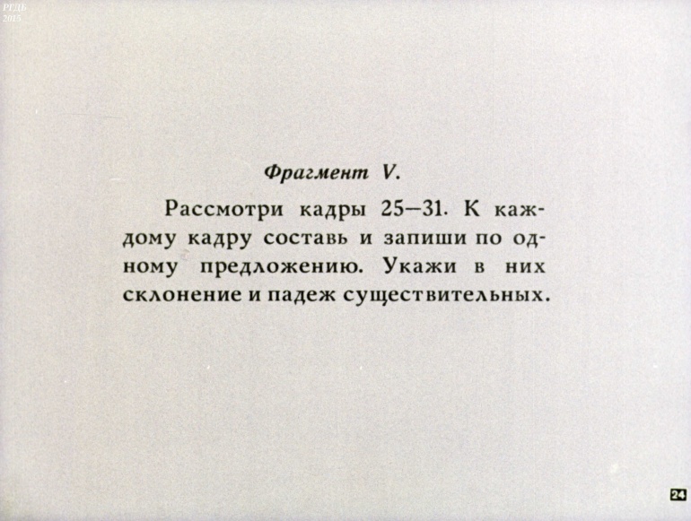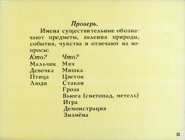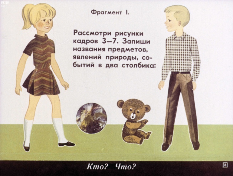 Имя существительное 5 Категория: ДиафильмыПросмотры: 1 197 Диафильм "Имя существительное".Студия "Диафильм" Госкино СССР, 1973 год. Д-136-73, цветной 0-30 копеек Логотип Диафильм Имя существительное. Упражнения к урокам русского языка в 3 классе.