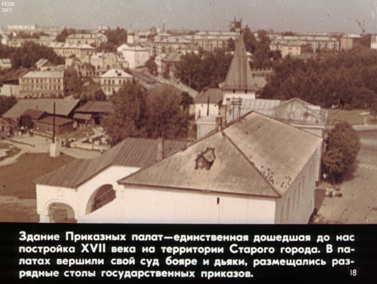 Здание Приказных палат — единственная дошедшая до нас постройка XVII века на территории Старого города. В палатах вершили свой суд бояре и дьяки, размещались разрядные столы государственных приказов.