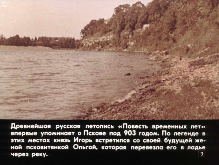 Древнейшая русская летопись «Повесть временных лет» впервые упоминает о Пскове под 903 годом. По легенде в этих местах князь Игорь встретился со своей будущей женой псковитянкой Ольгой, которая перевезла его в ладье через реку.