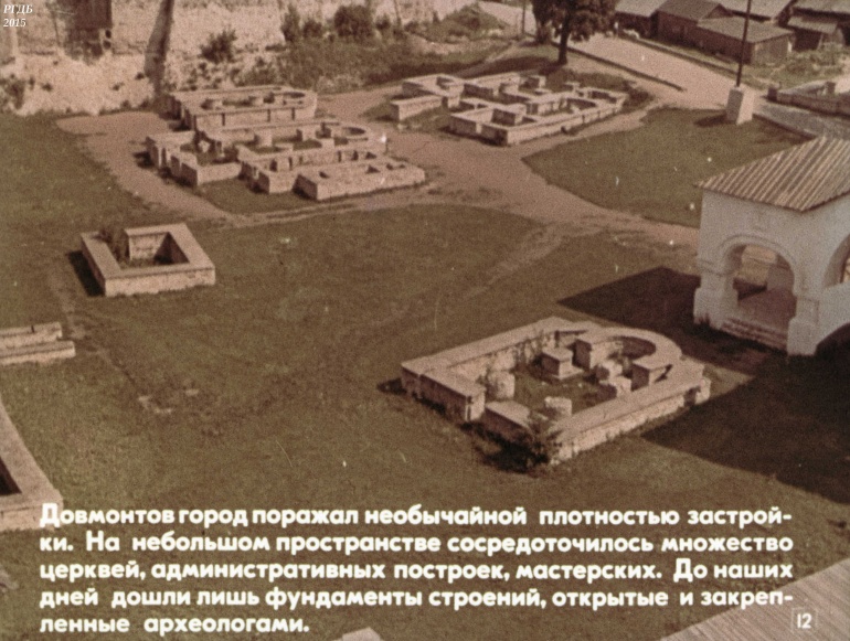 Довмонтов город поражал необычайной плотностью застройки. На небольшом пространстве сосредоточилось множество церквей, административных построек, мастерских. До наших дней дошли лишь фундаменты строений, открытые и закрепленные археологами.