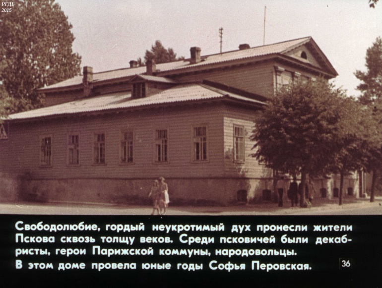 Свободолюбие, гордый неукротимый дух пронесли жители Пскова сквозь толщу веков. Среди псковичей были декабристы, герои Парижской коммуны, народовольцы. В этом доме провела юные годы Софья Перовская.