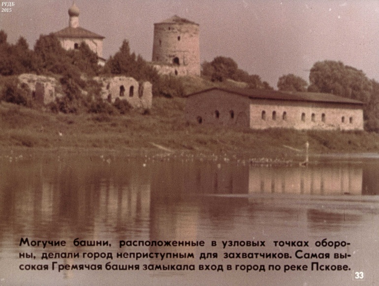 Могучие башни, расположенные в узловых точках обороны, делали город неприступным для захватчиков. Самая высокая Гремячая башня замыкала вход в город по реке Пскове.