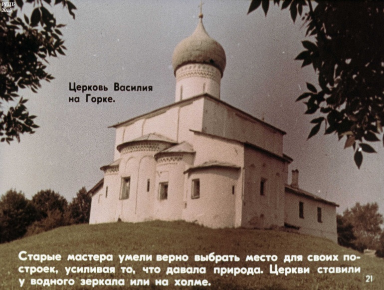 Старые мастера умели верно выбрать место для своих построек, усиливая то, что давала природа. Церкви ставили у водного зеркала или на холме. Церковь Василия на Горке.