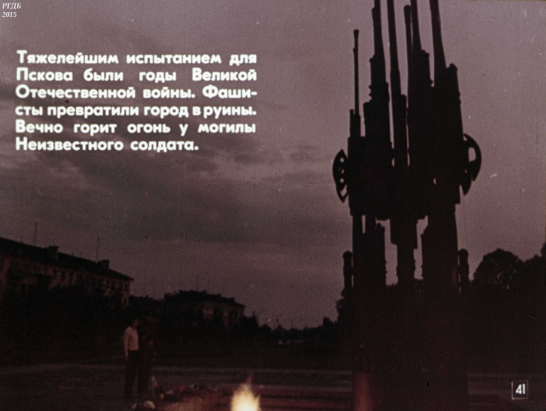 Тяжелейшим испытанием для Пскова были годы Великой Отечественной войны. Фашисты превратили город в руины. Вечно горит огонь у могилы Неизвестного солдата.
