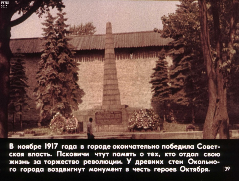 В ноябре 1917 года в городе окончательно победила Советская власть. Псковичи чтут память о тех, кто отдал свою жизнь за торжество революции. У древних стен Окольного города воздвигнут монумент в честь героев Октября.