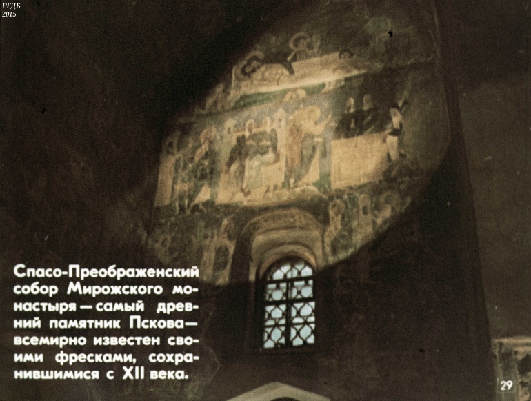 Спасо-Преображенский собор Мирожского монастыря — самый древний памятник Пскова — всемирно известен своими фресками, сохранившимися с XII века.