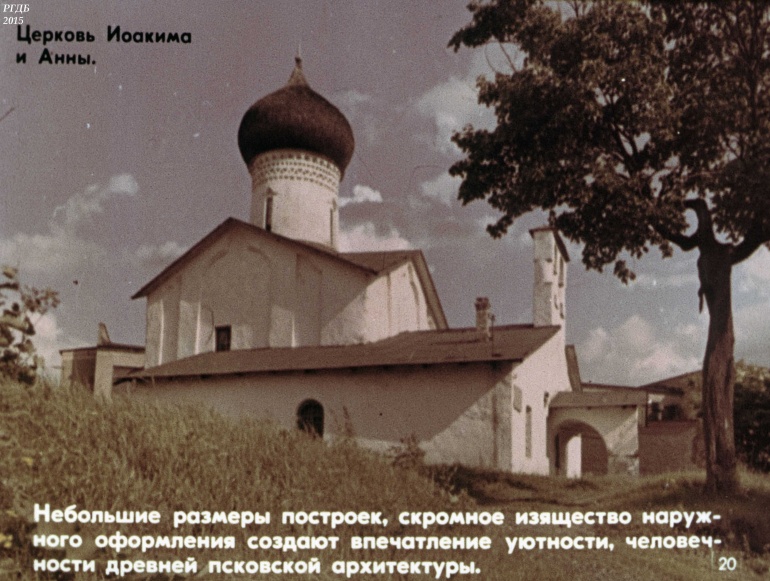 Небольшие размеры построек, скромное изящество наружного оформления создают впечатление уютности, человечности древней псковской архитектуры. Церковь Иоакима и Анны..