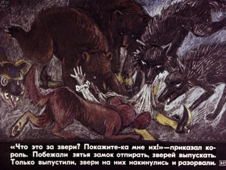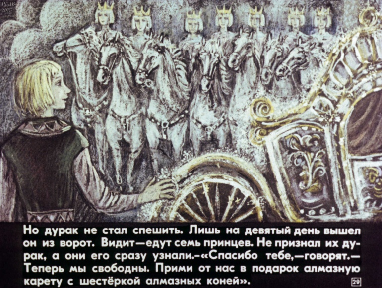 Как крестьянский сын заколдованных братьев спас 3 Категория: ДиафильмыПросмотры: 1 153 Диафильм "Как крестьянский сын заколдованных братьев спас". Латышская народная сказкаСтудия "Диафильм" Госкино СССР, 1979 год. Д-162-79, цветной 0-30 копеек