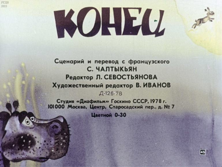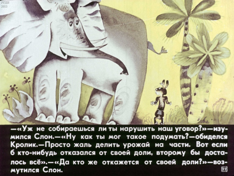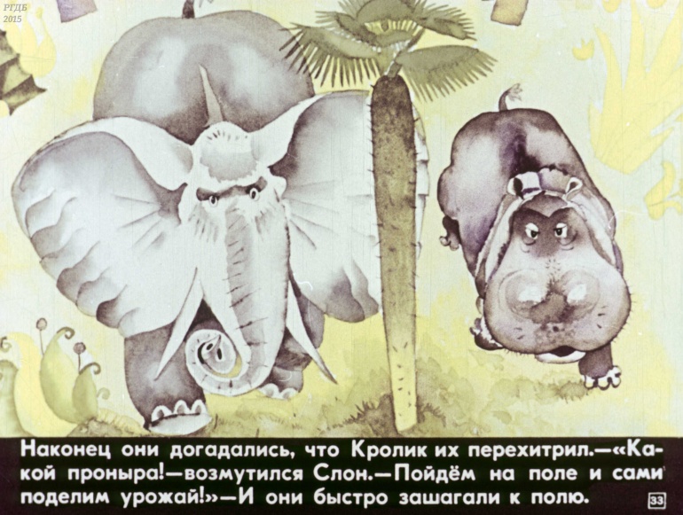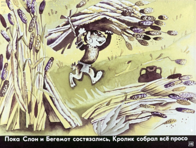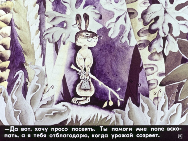 Как кролик просо сеял 2 Категория: ДиафильмыПросмотры: 1 012 Диафильм "Как кролик просо сеял". Африканская сказкаСтудия "Диафильм" Госкино СССР, 1978 год. Д-126-78, цветной 0-30 копеек