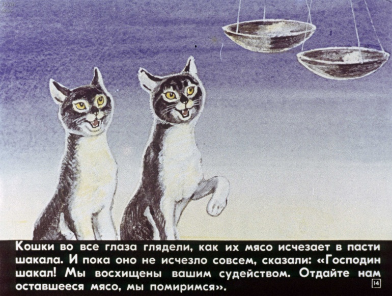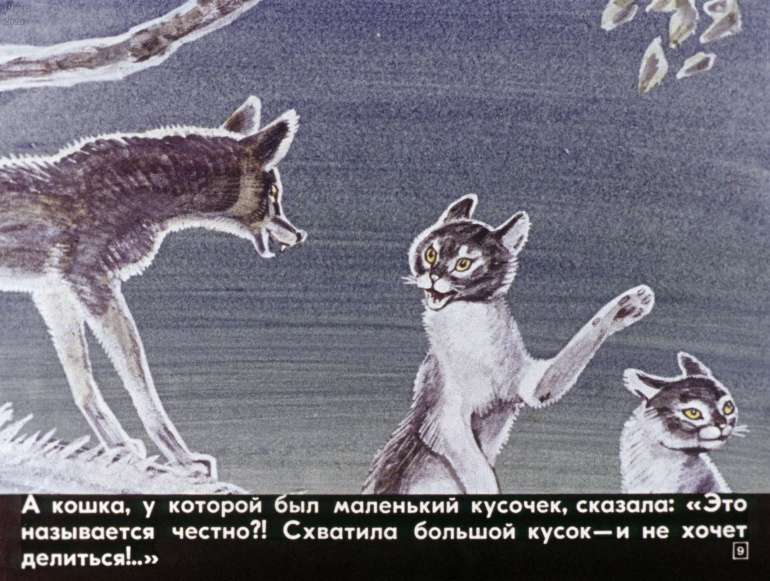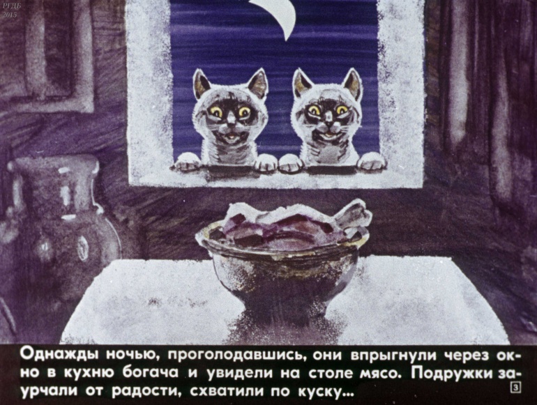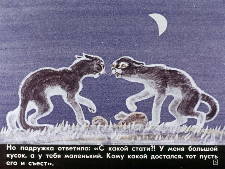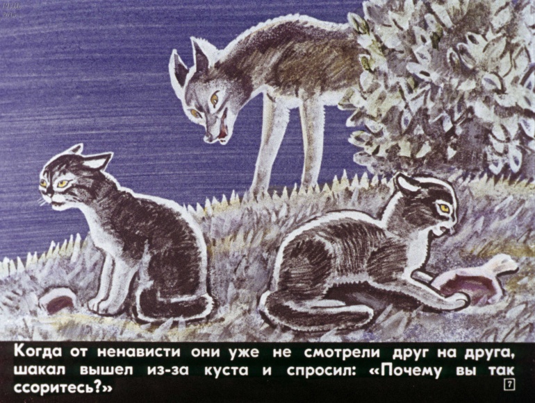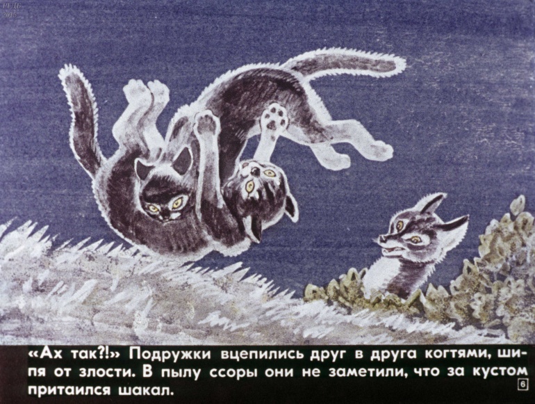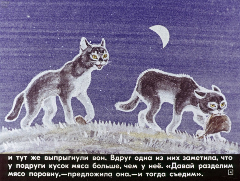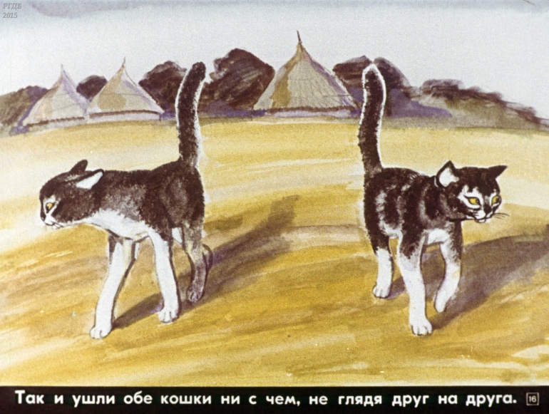 Как поссорились две кошки 2 Категория: ДиафильмыПросмотры: 1 133 Диафильм "Как поссорились две кошки". Эфиопская сказкаСтудия "Диафильм" Госкино СССР, 1981 год. Д-031-81, цветной 0-30 копеек