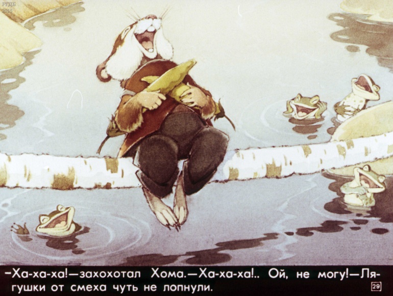 Как Хома рассмеялся 2 Категория: ДиафильмыПросмотры: 1 138 А. Иванов. Диафильм "Как Хома рассмеялся".Студия "Диафильм" Госкино СССР, 1971 год. Д-031-79, цветной 0-30 копеек