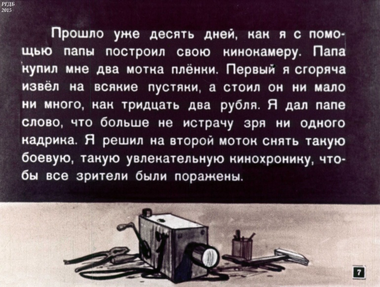 Как я снимал кинохронику 2 Категория: ДиафильмыПросмотры: 1 171 Ю. Сотник. Диафильм "Как я снимал кинохронику".Студия "Диафильм" Госкино СССР, 1959 год. Д-31-59, цветной 0-30 копеек