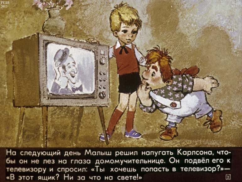 Карлсон вернулся. Часть 2-я 9 Категория: ДиафильмыПросмотры: 2 097 Диафильм "Карлсон вернулся. Часть 2-я". По мотивам повести Астрид ЛиндгренСтудия "Диафильм" Госкино СССР, 1982 год. Д-622-82, цветной 0-30 копеек