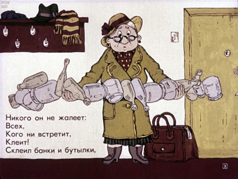 Клей 2 Категория: ДиафильмыПросмотры: 1 490 Борис Заходер. Диафильм "Клей".Студия "Диафильм" Госкино СССР, 1981 год. Д-299-81, цветной 0-30 копеек