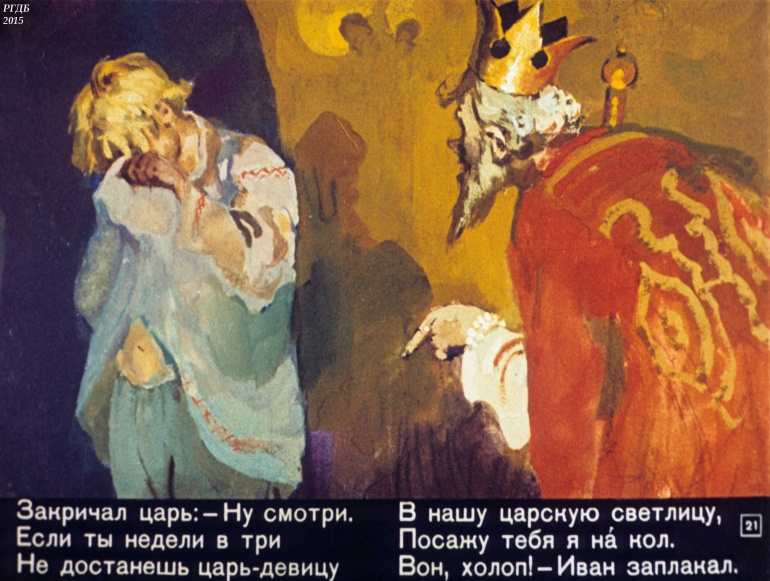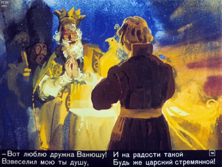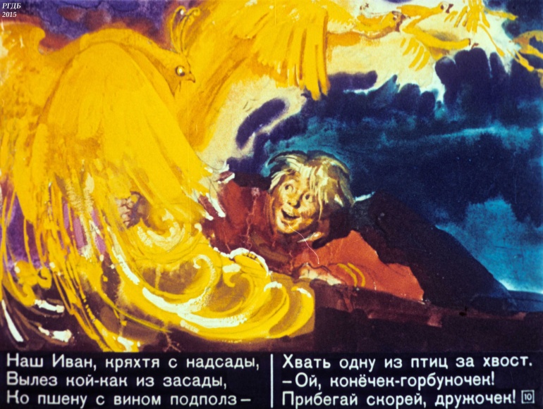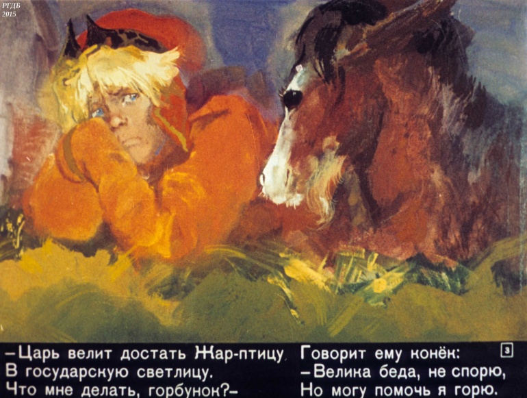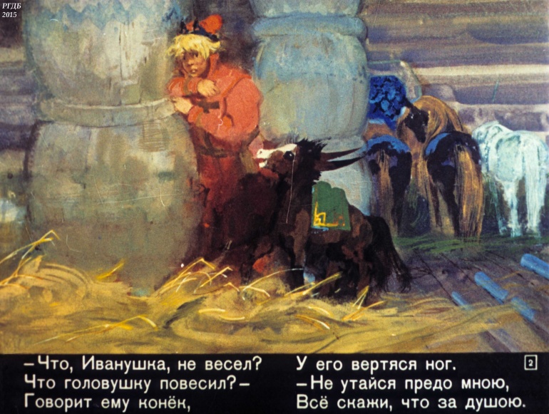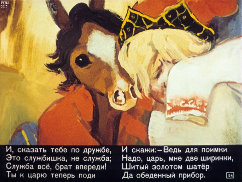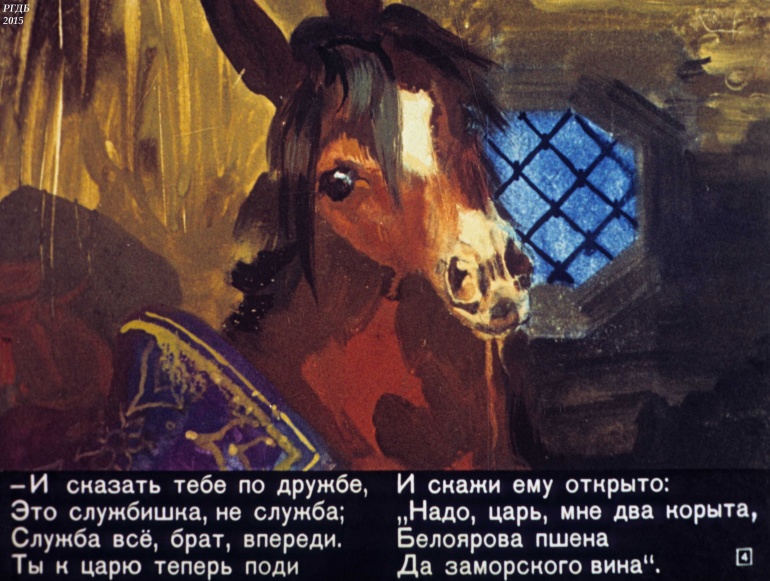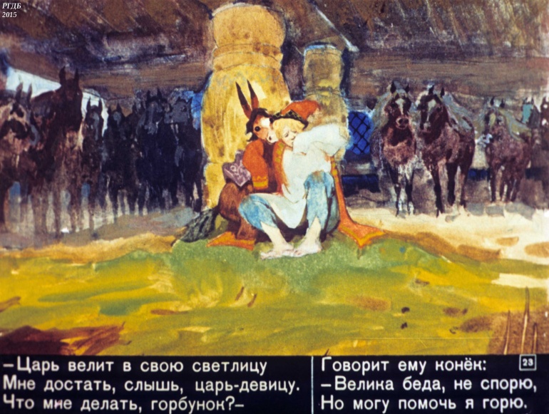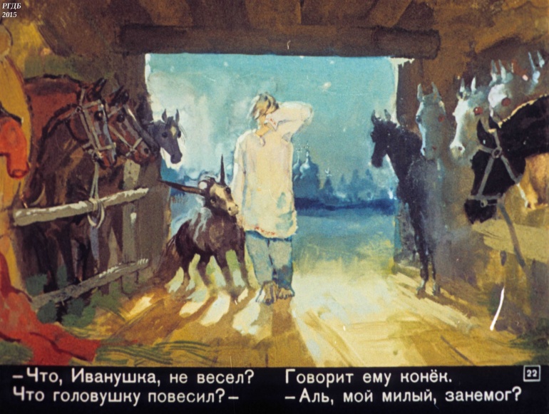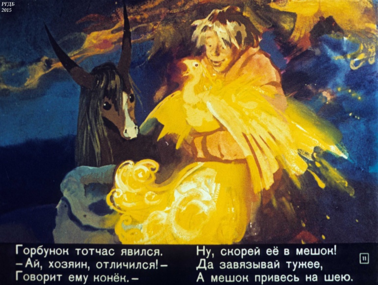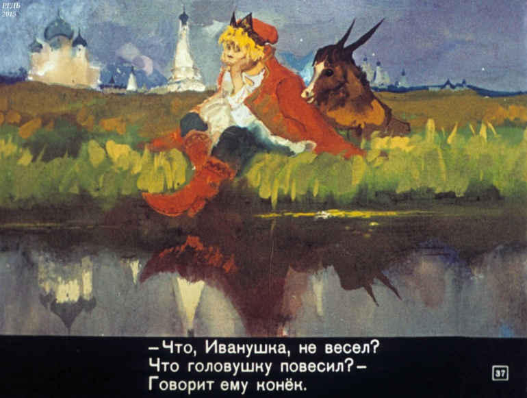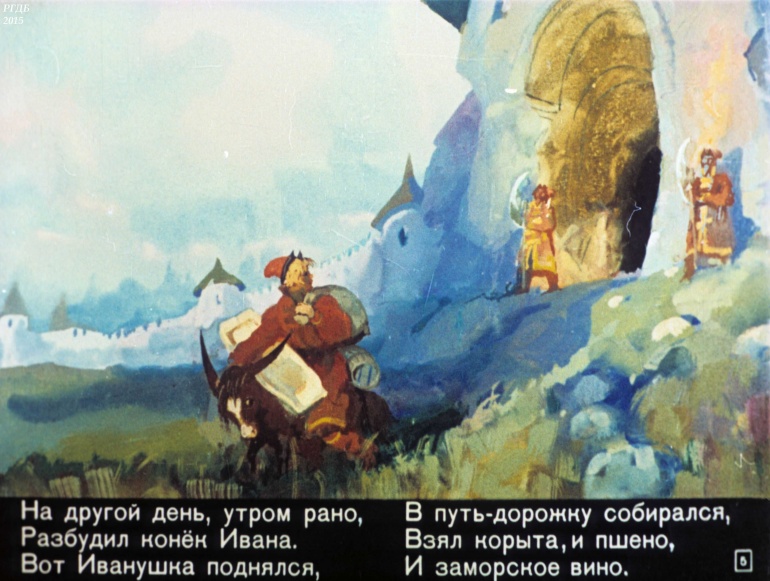 Конек-Горбунок Часть 3 1 Категория: ДиафильмыПросмотры: 2 330 Диафильм в 4-х частях "Конек-Горбунок". Часть 3. Сценарий и обработка Корнея ЧуковскогоСтудия "Диафильм" Госкино СССР, 1966 год. Д-72-66, цветной 0-30 копеек