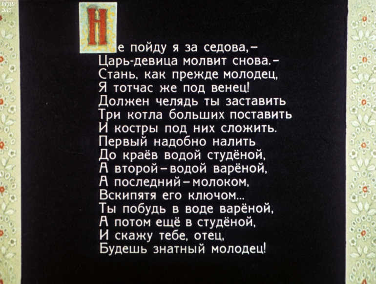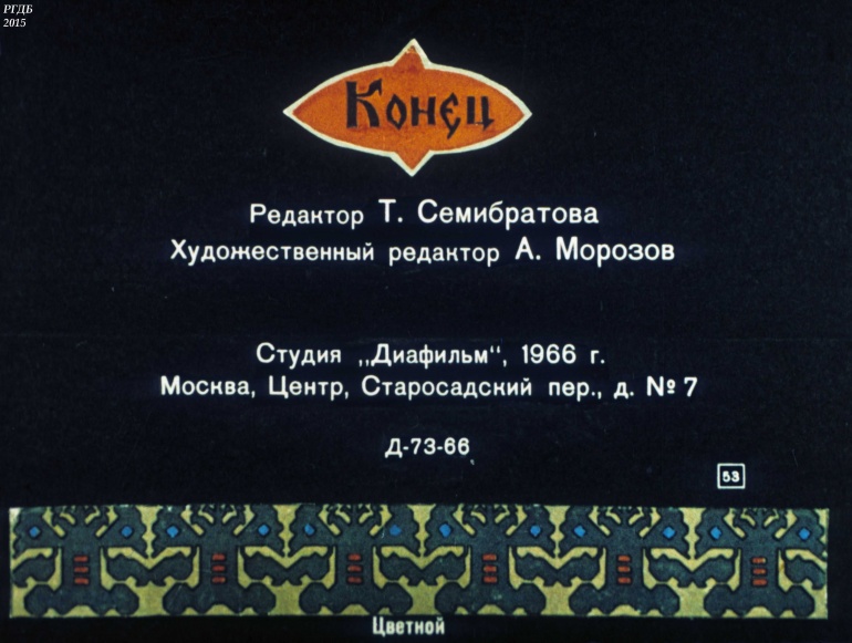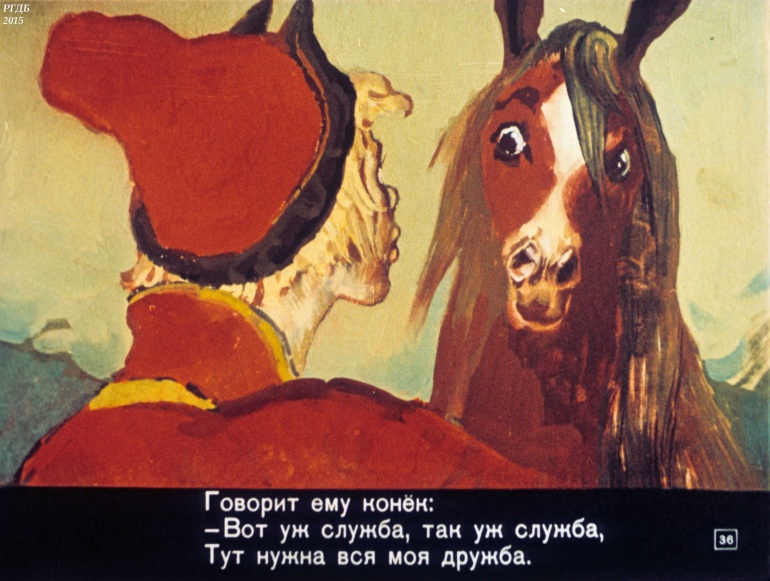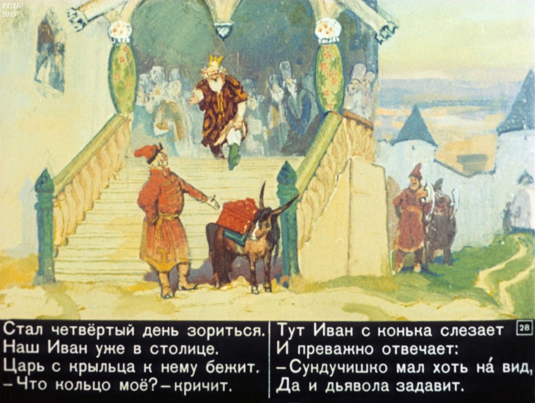 Конек-Горбунок Часть 4 4 Категория: ДиафильмыПросмотры: 1 586 Диафильм в 4-х частях "Конек-Горбунок". Часть 4. Сценарий и обработка Корнея ЧуковскогоСтудия "Диафильм" Госкино СССР, 1966 год. Д-73-66, цветной 0-30 копеек