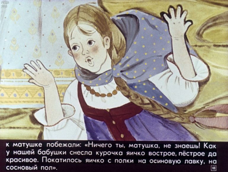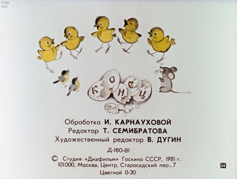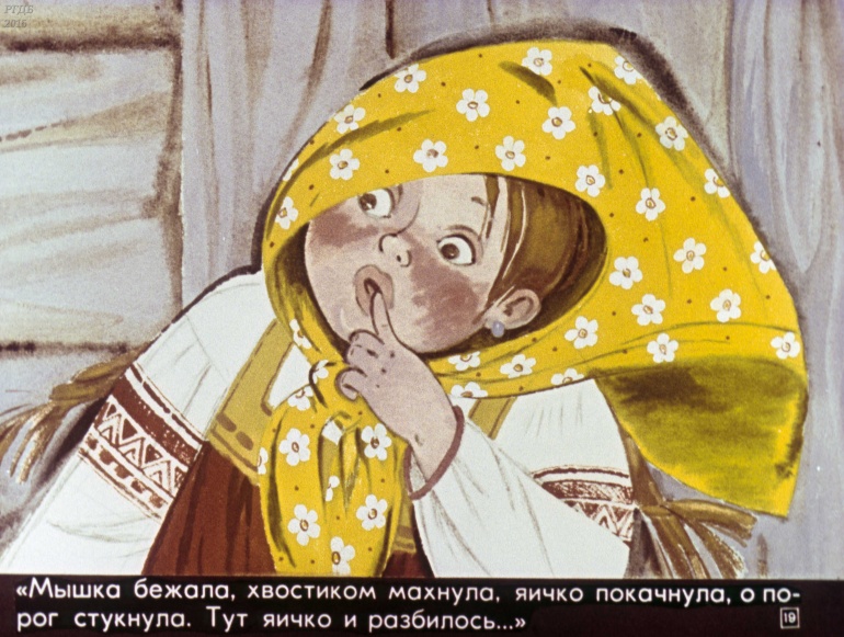 Курочка Ряба 5 Категория: ДиафильмыПросмотры: 1 383 Диафильм "Курочка Ряба". Русская народная сказкаСтудия "Диафильм" Госкино СССР, 1981 год. Д-160-81, цветной 0-30 копеек