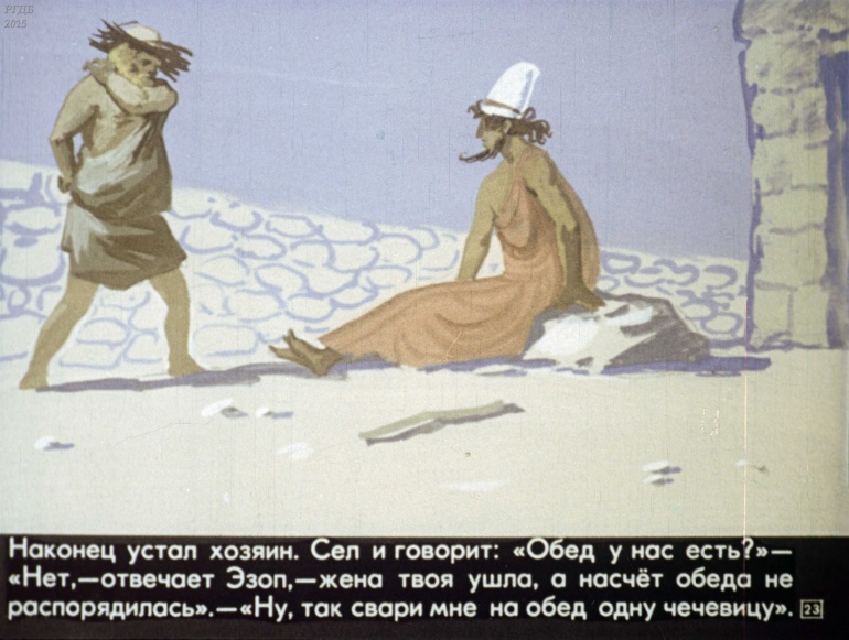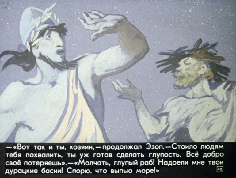Легенда об Эзопе. Часть 1 1 Категория: ДиафильмыПросмотры: 1 433 В. Непомнящий. Диафильм "Легенда об Эзопе". Часть 1Студия "Диафильм" Госкино СССР, 1978 год. Д-204-78, цветной 0-30 копеек