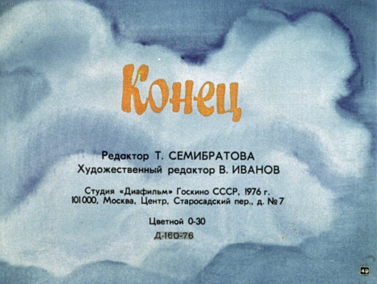 Лоскутик и облако. Часть 2 3 Категория: ДиафильмыПросмотры: 1 709 Софья Прокофьева. Диафильм "Лоскутик и облако". Часть 2Студия "Диафильм" Госкино СССР, 1976 год. Д-160-76, цветной 0-30 копеек