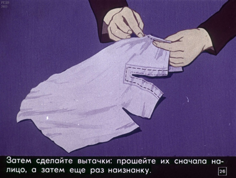 Затем сделайте вытачки: прошейте их сначала налицо, а затем еще раз наизнанку.