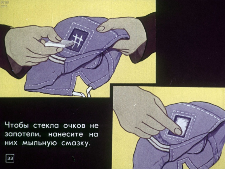 Чтобы стекла очков не запотели, нанесите на них мыльную смазку.