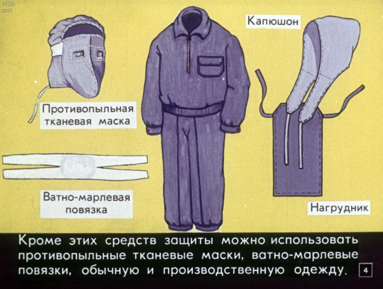 Кроме этих средств защиты можно использовать противопыльные тканевые маски, ватно-марлевые повязки, обычную и производственную одежду.