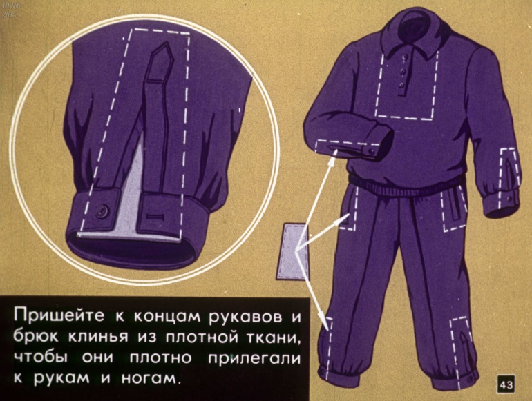 Пришейте к концам рукавов и брюк клинья из плотной ткани, чтобы они плотно прилегали к рукам и ногам.