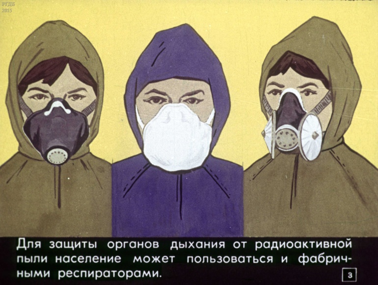 Для защиты органов дыхания от радиоактивной пыли население может пользоваться и фабричными респираторами.