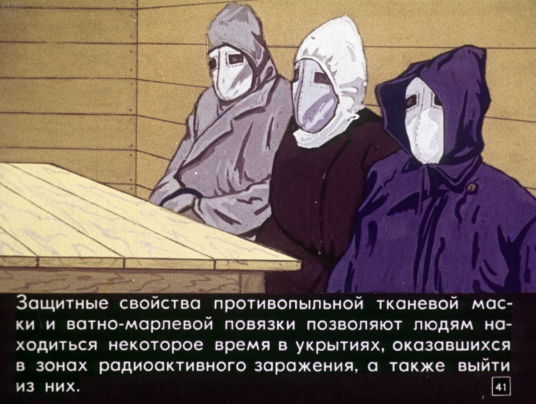 Защитные свойства противопыльной тканевой маски и ватно-марлевой повязки позволяют людям находиться некоторое время в укрытиях, оказавшихся в зонах радиоактивного заражения, а также выйти из них.