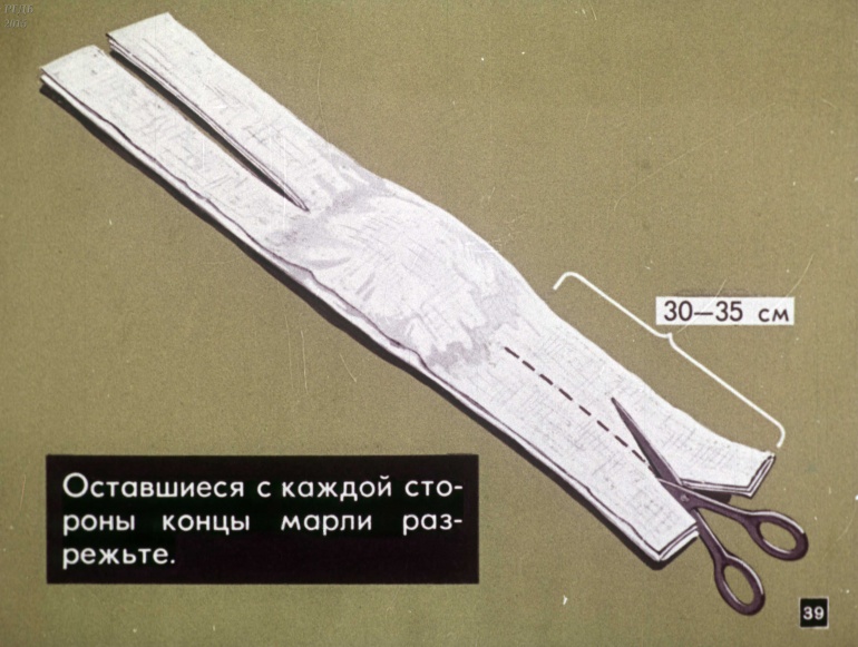 Оставшиеся с каждой стороны концы марли разрежьте.