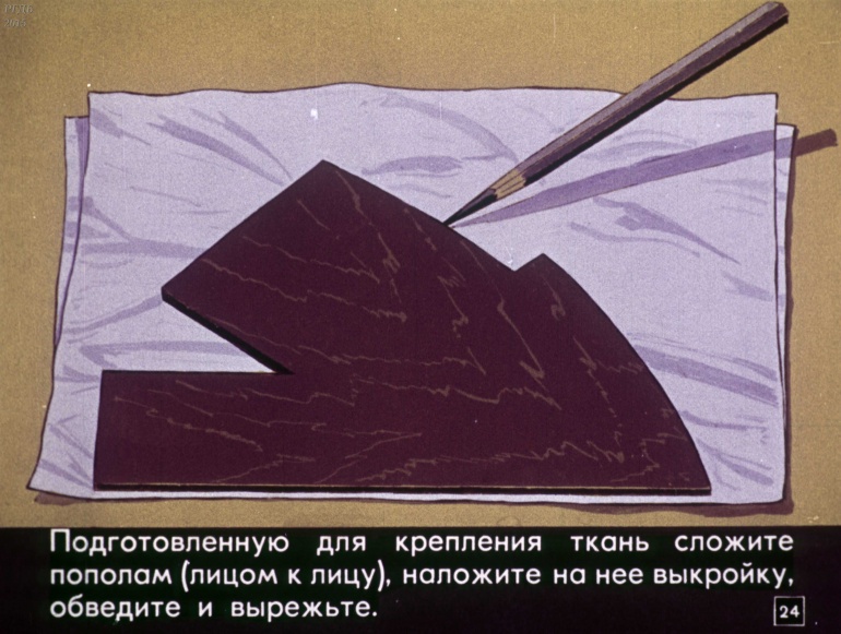 Подготовленную для крепления ткань сложите пополам (лицом к лицу), наложите на неё выкройку,обведите и вырежьте.