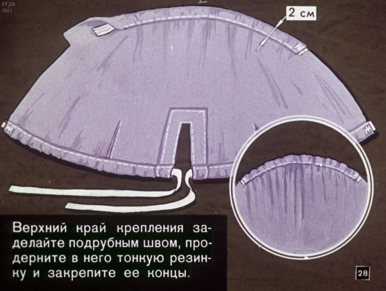 Верхний край крепления заделайте подрубным швом, продерните в него тонкую резинку и занрепите ее концы.
