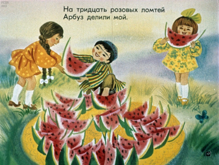 Мой арбуз 3 Категория: ДиафильмыПросмотры: 1 417 Диафильм "Мой арбуз".Студия "Диафильм" Госкино СССР, 1981 год. Д-001-81, цветной 0-30 копеек